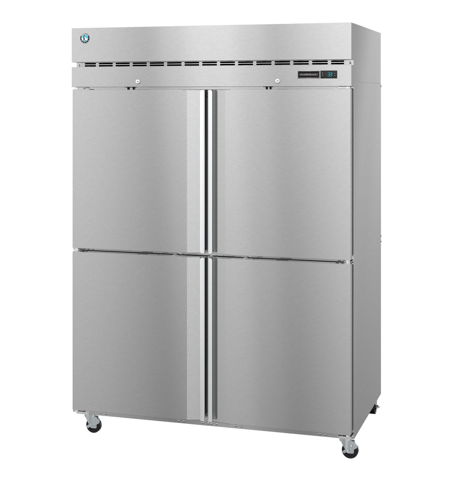 Hoshizaki, R2A-HS, Steelheart Series Refrigerator, reach-in, two-section, 50.37 cu. ft., top mounted self-contained refrigeration, (6) epoxy coated wire shelves, (4) half-height solid hinged doors, digital temperature display/controls, LED interior lighting, stainless steel exterior front & sides, stainless steel interior, (4) 4" heavy duty casters (2 with brakes), R290 Hydrocarbon refrigerant, 1/2 HP, NEMA 5-15P, cETLus, ETL-Sanitation