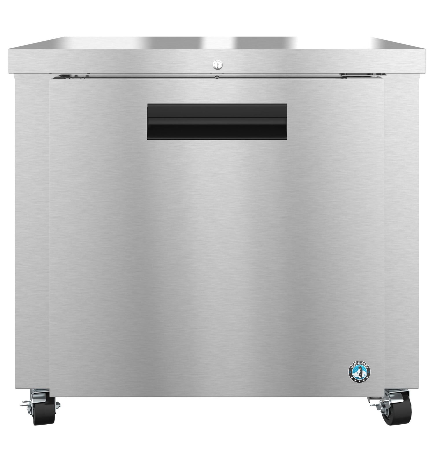 Hoshizaki, UR36B-01, Steelheart Series Undercounter Refrigerator, reach-in, one-section, 36"W, 9.9 cu. ft., self-contained rear mounted refrigeration system, (1) solid hinged door, cylinder door lock, (1) adjustable shelf, hot gas condensate removal, stainless steel interior, stainless steel exterior front, sides & top, (4) 4" stem casters (2 with brakes), R290 Hydrocarbon refrigerant, 1/6 HP, NEMA 5-15P, ETL-Sanitation, cETLus, ENERGY STAR® (Special Order)