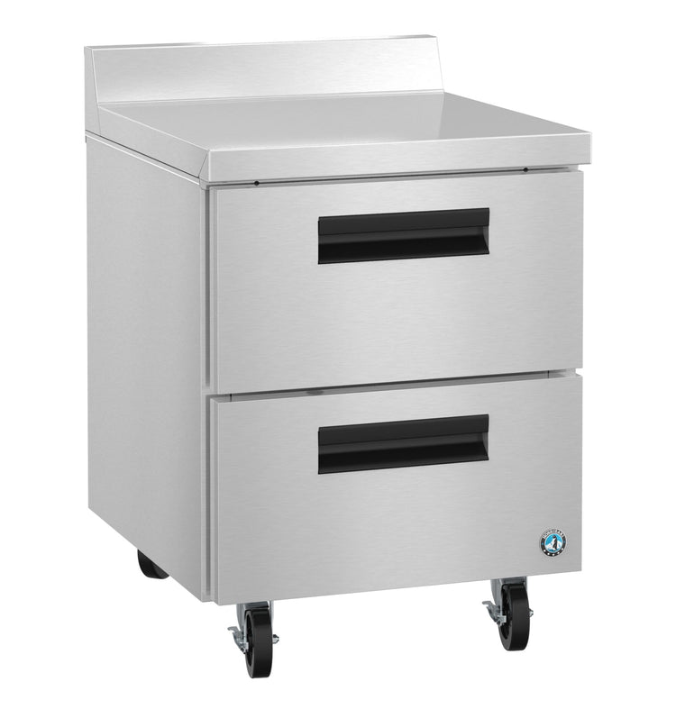 Hoshizaki, WF27B-D2, Steelheart Series Worktop Freezer, reach-in, one-section, 27"W, 7.21 cu. ft., self-contained rear mounted refrigeration system, (2) stainless steel drawers, stainless steel interior, stainless steel exterior front, sides & top, (4) 6" stem casters (2 with brakes), R290 Hydrocarbon refrigerant, 1/5 HP, NEMA 5-15P, cETLus, ETL-Sanitation