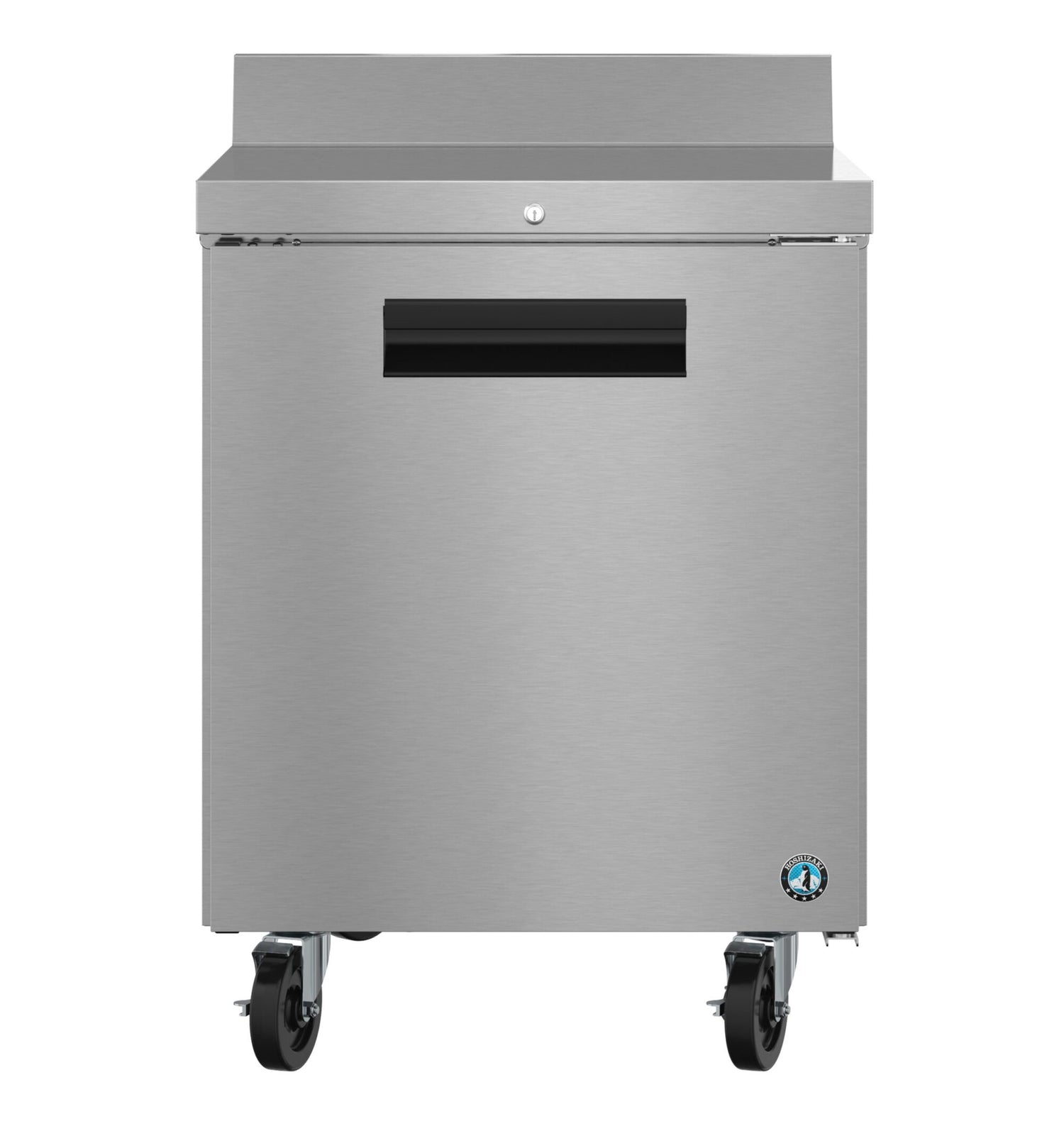 Hoshizaki, WR27B-01, Steelheart Series Worktop Refrigerator, reach-in, one-section, 27"W, 7.21 cu. ft., self-contained rear mounted refrigeration system, (1) solid hinged door, cylinder door lock, (1) adjustable shelf, stainless steel interior, stainless steel exterior front, sides & top, (4) 6" stem casters (2 with brakes), R290 Hydrocarbon refrigerant, 1/6 HP, cord, NEMA 5-15P, cETLus, ETL-Sanitation, ENERGY STAR® (Special order)