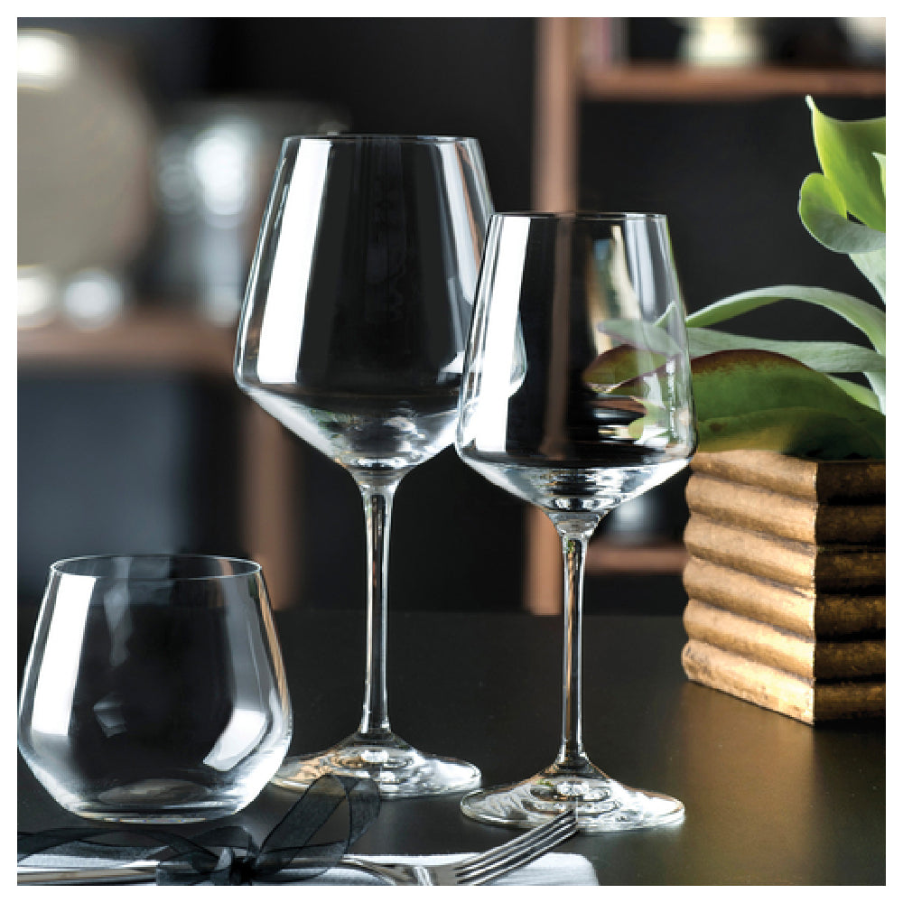 Constructed from lead-free crystal, the Ariana All Purpose Wine Glass measures 8.75 inches in height and weighs 6 lbs per piece, ensuring stability and resilience in professional environments. Its non-tempered, sheer rim accentuates elegance, suitable for repeat dishwasher cleaning. Designed for all-purpose wine service, the glass’s dimensions and material composition make it apt for mid-volume outlets such as restaurants, hotels, and catering venues. Operating within standard foodservice parameters, this glass requires minimal handling and maintenance, with compatibility across typical commercial dishwashing equipment and countertop storage setups. The crystal’s high optical clarity and robust stem base support frequent use, contributing to an upscale beverage presentation in busy hospitality operations.