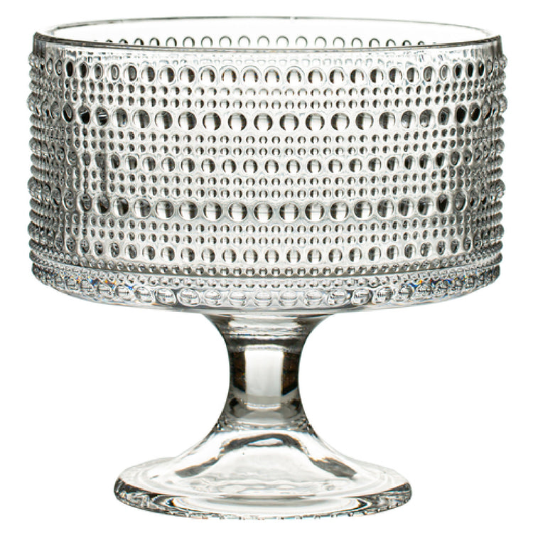 This footed bowl features a robust 7.75-inch diameter round design with premium glass material, ideal for commercial foodservice operations needing durable and visually appealing presentation pieces. Its footed base enhances stability, while the smooth surface simplifies cleaning and maintenance. Suitable for use in upscale dining, catering, or buffet displays, it integrates seamlessly with various tableware sets and food presentation workflows, supporting high-throughput service without compromising sanitation or assembly speed.