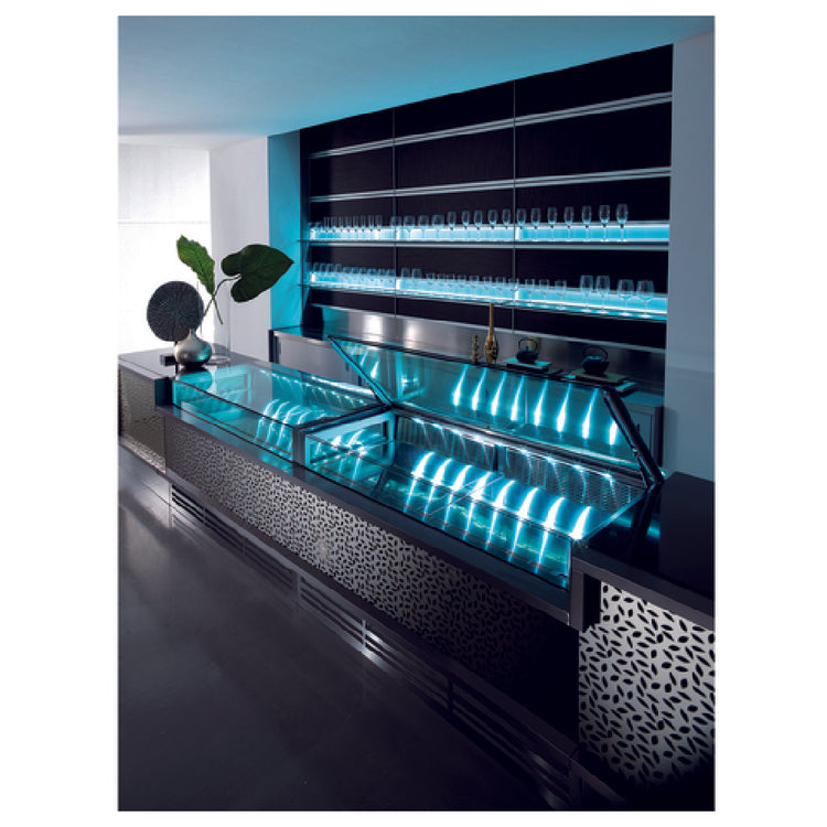 The Howard-McCray LAR-TT4H40-D10-46-39 24h La Rossa Deli Display Case/Showcase is a commercial-grade refrigerated display unit designed for high-traffic foodservice environments. Featuring a 39.36-inch length without panels, it combines insulated, self-contained, air-cooled refrigeration with a refrigerated deck and a non-refrigerated shelf, making it ideal for showcasing delicatessen products, prepared foods, and salads. The unit’s durable stainless steel interior and anodized aluminum construction ensure longevity and ease of maintenance, while LED lighting enhances product visibility. Tempered single-pane heated glass front and double-pane glass sides provide temperature stability and energy efficiency, with a hydraulic lift-up top glass for convenient access. Digital diagnostic controls facilitate programmable defrosting and simplified operation, supporting consistent performance in busy commercial kitchens or sandwich stations. Overall, this showcase offers precise temperature control, robust materials, and seamless user features suitable for professional food display applications.