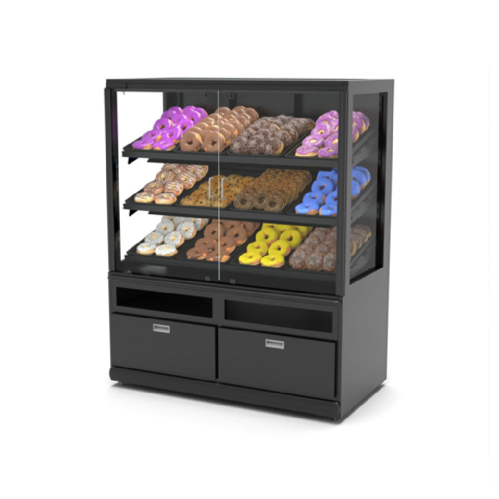 Hussmann, DPPGP-48-58-M, Delight Pastry Display Case, GP Series, 48"W x 58"H x 24"D, ambient, (4) slanted adjustable wire shelves, LED canopy and shelf lights, tempered glass front swinging doors, lower pull out drawers, metal construction, 120v/60/1-ph, 0.88 amps, cETLus, ETL Sanitation