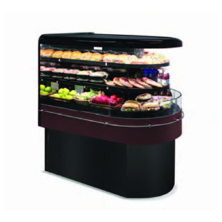 The Hussmann TY4-4X8E-S open merchandiser offers a spacious, multi-level display with 4 adjustable shelf levels across 2 rows, designed for easy product access and inventory visibility. Constructed with durable materials, it features a black interior and exterior, with a radius glass perimeter for enhanced visual appeal. Its self-contained refrigeration provides reliable climate control, optimized for moderate retail throughput. The digital Danfoss controller allows for demand defrost control, reducing energy consumption, while the 2" black vinyl bumper safeguards the unit from forklift or contact damage. Ideal for mid-volume foodservice environments, it simplifies stocking and maintenance workflows, supporting efficient customer service operations.