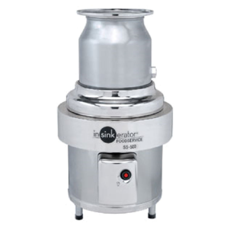 A commercial disposer is a heavy-duty waste grinding device designed for high-capacity food waste reduction, typically installed in large kitchens, cafeterias, or food processing facilities. The InSinkErator SS-500™ Complete Disposer Package features a robust 5 HP motor housed in stainless steel, supporting continuous operation and high throughput. It is commonly used in industrial foodservice environments requiring efficient sanitation and waste management, such as large institutional kitchens and high-volume restaurants. Its trough mount system with a 6-5/8" inlet diameter enables seamless integration with trough-style waste channels, making it ideal for high-volume food processing applications.