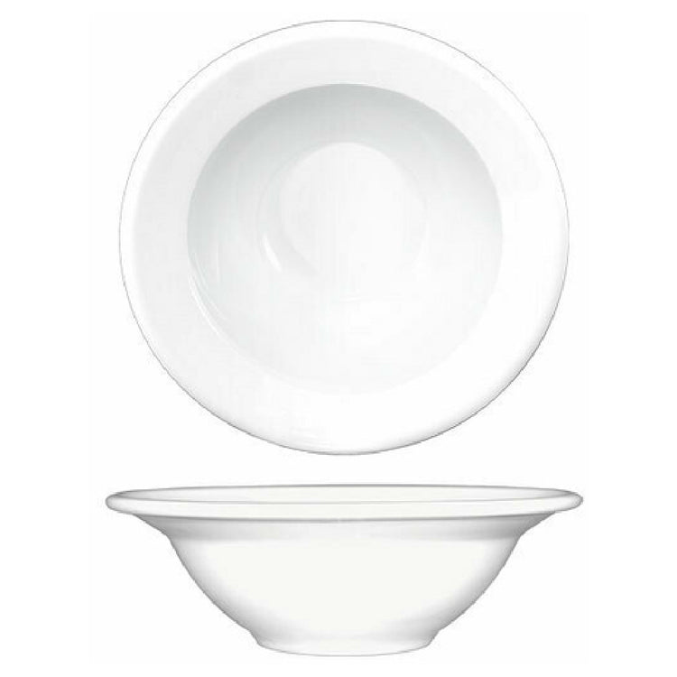 Why Choose International Tableware BL-10 Grapefruit Bowl? It stands out with its fully vitrified porcelain body which ensures longevity and resistance to chipping, surpassing typical ceramic bowls. Its excellent heat tolerance and dishwasher-safe design foster operational efficiency and sanitation in commercial kitchens. The stylish white finish and rolled edge make it both practical and visually appealing in professional dining environments.