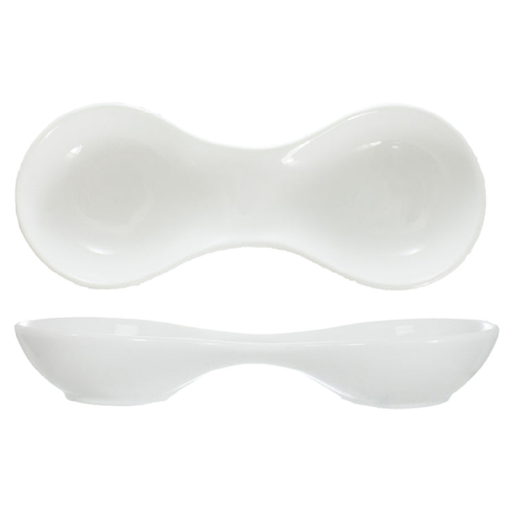 International Tableware BL-800 7-3/4 Inch Dish with 2 Wells Porcelain Bright White - 1 Dozen