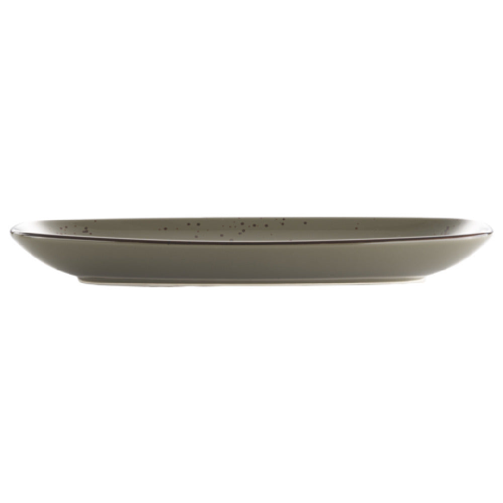 International Tableware SH-14-GS 13-3/4 Inch Platter Organic Rectangle Stoneware Green Smoke with Dark Brown Trim - 1 Dozen