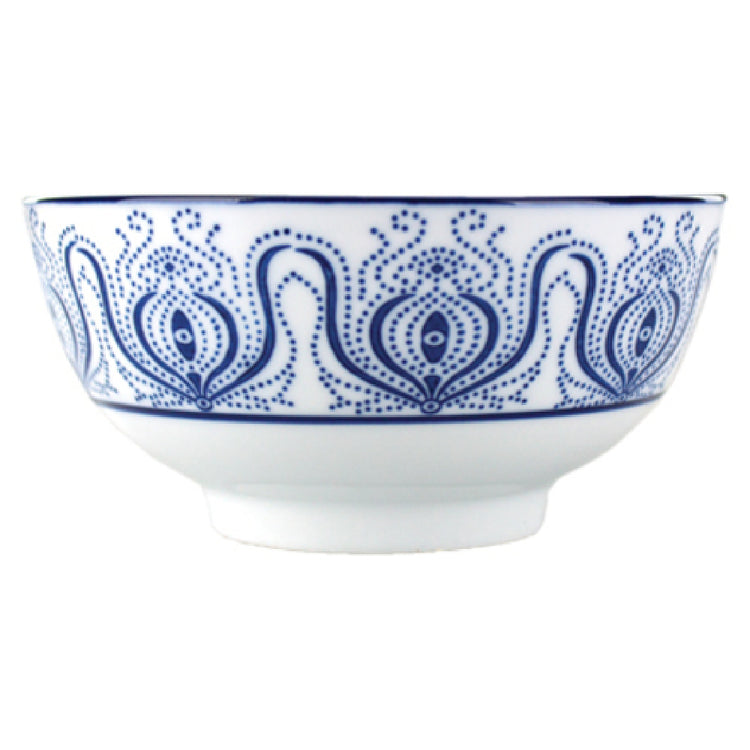 The SH-5 porcelain bowl is tailored for commercial foodservice operations requiring durable, microwave and dishwasher safe tableware. Its 14 oz. capacity, round shape, and footed base support versatile plating and portioning. Crafted from lead-free porcelain, it withstands thermal and mechanical stresses typical in high-volume kitchens. The bowl’s size and shape promote ease of handling, stacking, and rapid cleaning, making it ideal for institutions, cafes, and buffet lines. Designed for reliable performance in demanding environments, the SH-5 enhances efficiency in food presentation and service workflows.