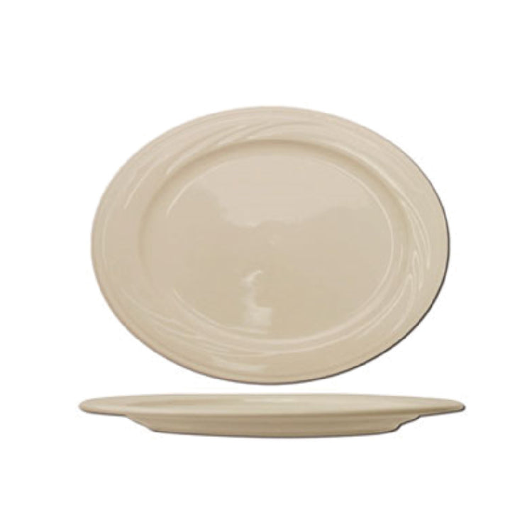 International Tableware Y-14 13 Inch Oval Embossed Platter Ceramic Lead Free - 1 Dozen