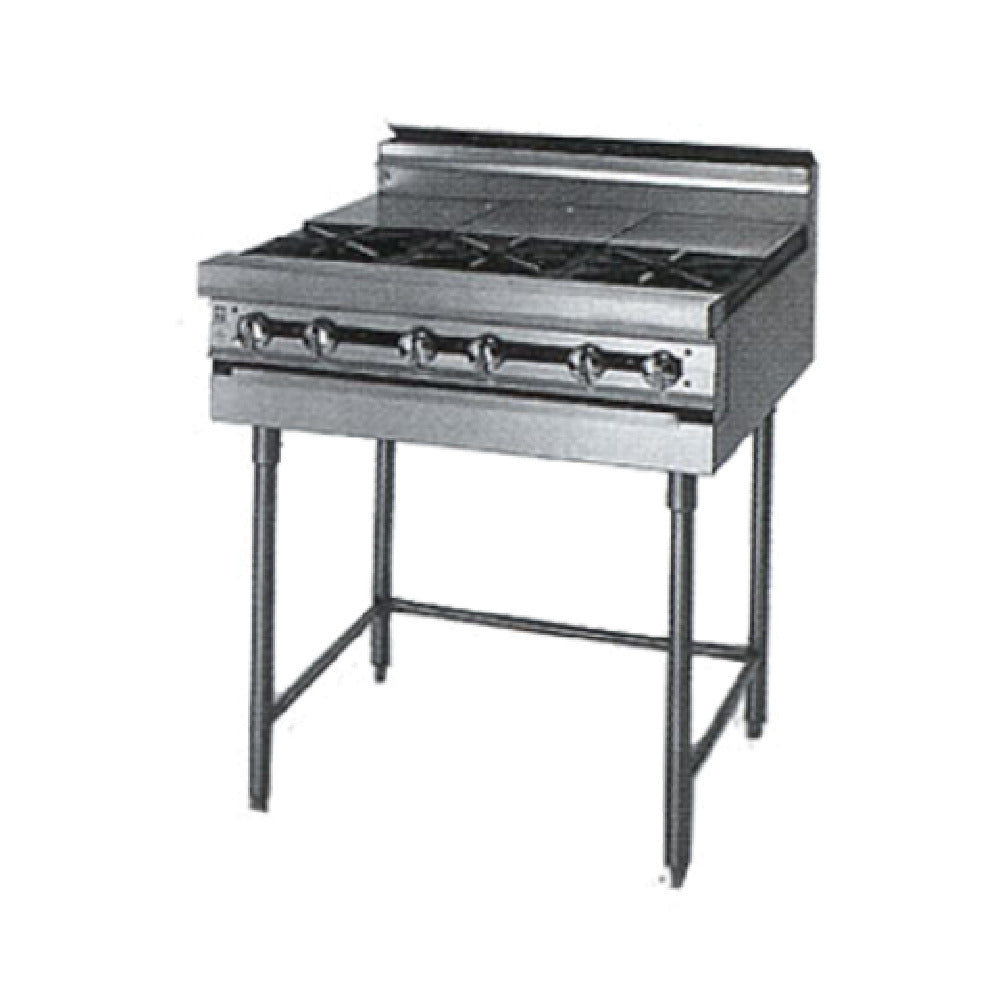 The Jade Range JMRH-1ST_NAT Titan™ Heavy Duty Range Gas 12" is a commercial-grade cooking appliance designed for high-demand foodservice environments. This modular gas range features a 12-inch stainless steel exterior finish, equipped with a 35,000 BTU open front burner and a 15,000 BTU rear hot top, offering precise heat control through infinite controls. Its robust construction, including stainless steel components and a durable 6-inch stainless steel plate shelf, ensures longevity and straightforward maintenance, making it suitable for busy kitchens requiring reliable performance and flexible workflow integration. With a total output of 50,000 BTU, this unit supports intensive cooking operations while maintaining operational efficiency in demanding culinary settings.