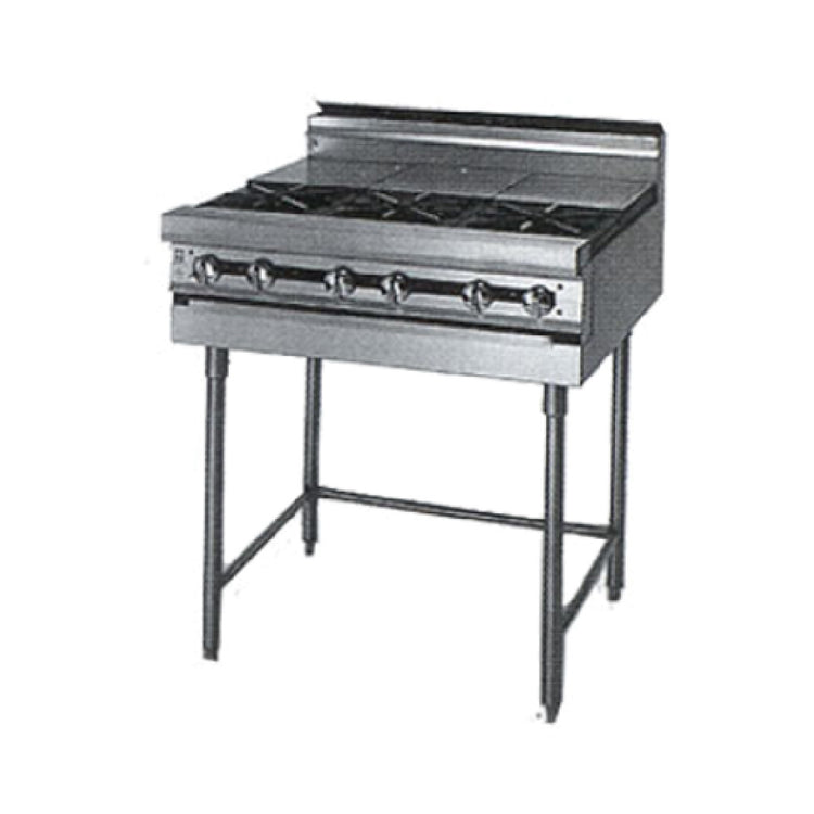 A commercial range is a heavy-duty cooking appliance designed for high-throughput foodservice establishments, providing reliable, high-capacity heating and versatile cooking surface options. The Jade Range JMRH-1ST_NAT Titan™ Heavy Duty Range is a model featuring a 12-inch width with open burners and hot tops built for demanding culinary environments. It is installed in professional kitchens such as restaurants, hotels, or institutional cafeterias, supporting continuous operation and precise temperature control. Engineered with stainless steel construction and safety compliance, it offers dependable performance for mid-volume restaurant service, making it a critical component of efficient food production workflows.