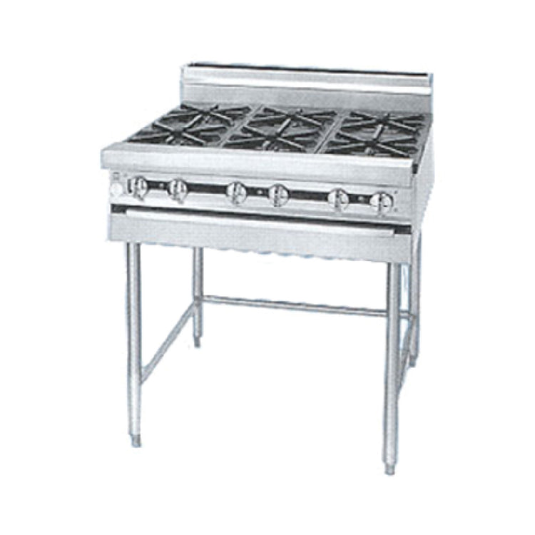 - Four open burners rated at 35,000 BTU each