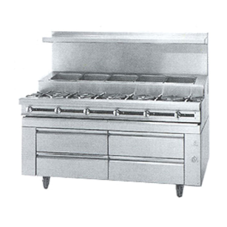 Jade Range JMSS-05-T-60_LP 60 Inch Heavy Duty Gas Range with Refrigerated Rail 5 Burner 150000 BTU