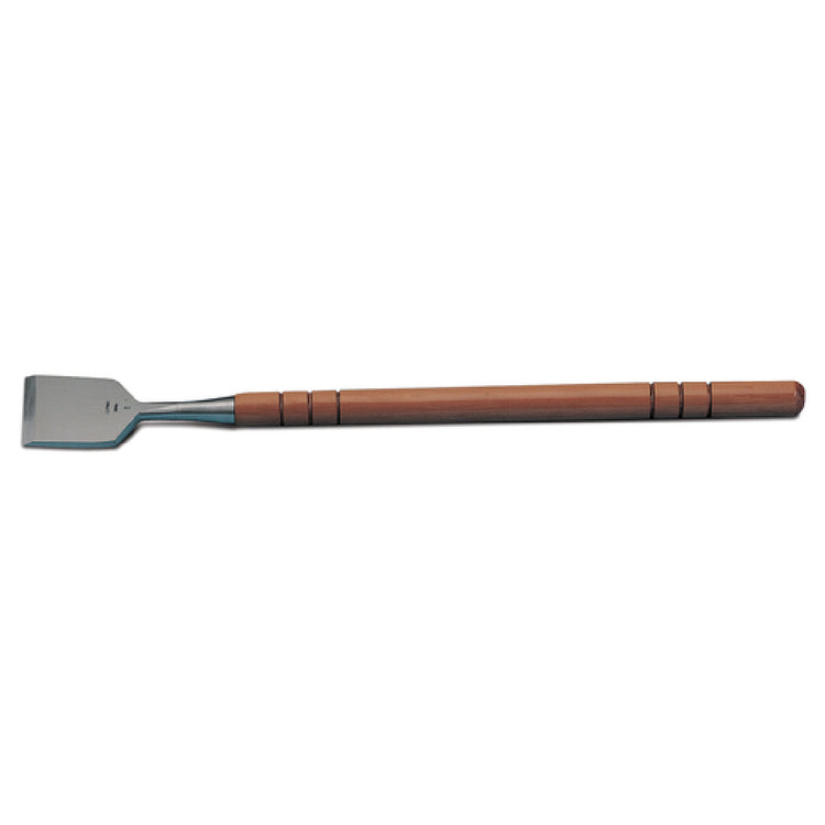 The JB Prince C522 ice carving chisel features a 24-inch overall length with a 2-inch straight blade, crafted from Japanese carbon steel known for toughness and edge resistance. The tool weighs approximately 1.68 lbs, designed for ergonomic handling in continuous carving sessions. Its durable wood handle offers a firm grip, supporting detailed sculpting tasks. The product is built with a focus on functional craftsmanship, ensuring reliable performance in demanding culinary art settings. Its simple design allows for straightforward cleaning and maintenance to sustain longevity in high-use environments, making it well-suited for professional ice sculptors and culinary artists in commercial kitchens and event venues. Operating within standard handling and safety protocols, it is compatible with various ice carving workflows without the need for electrical requirements or additional connectors.