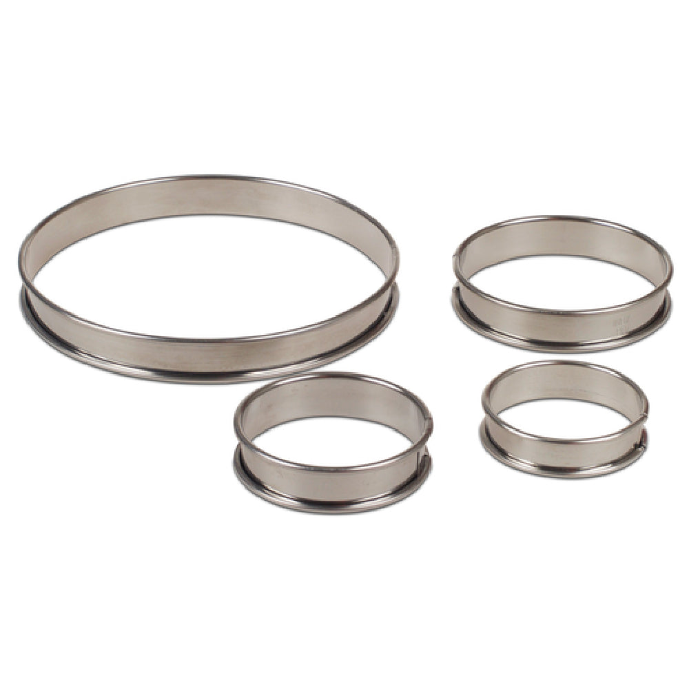 A commercial pastry ring is a durable stainless steel tool used in bakery and pastry kitchens for shaping and portioning dough and batters. Designed to produce consistent, uniform baked goods, the JB Prince M266 2.75 Flan Ring is a professional-grade pastry ring that supports high-volume production of desserts such as flans and custards. Its precise dimensions and sturdy construction make it suitable for installation in bakery stations or pastry prep areas, primarily used for creating consistent dessert shapes in commercial settings like bakeries, cafes, and restaurant kitchens, ideal for medium-volume pastry production and presentation.