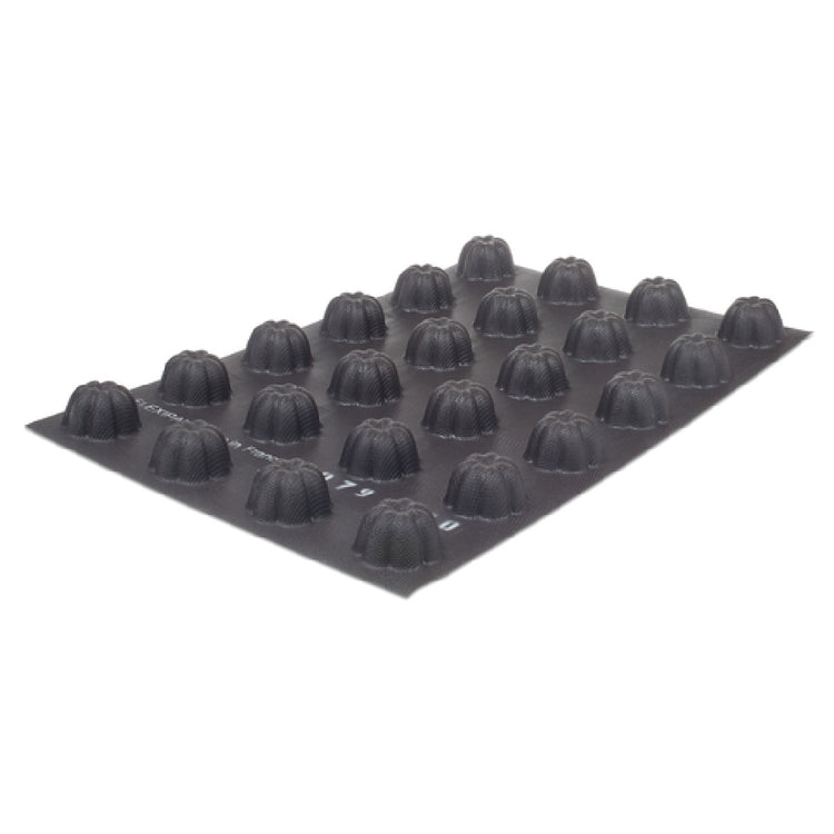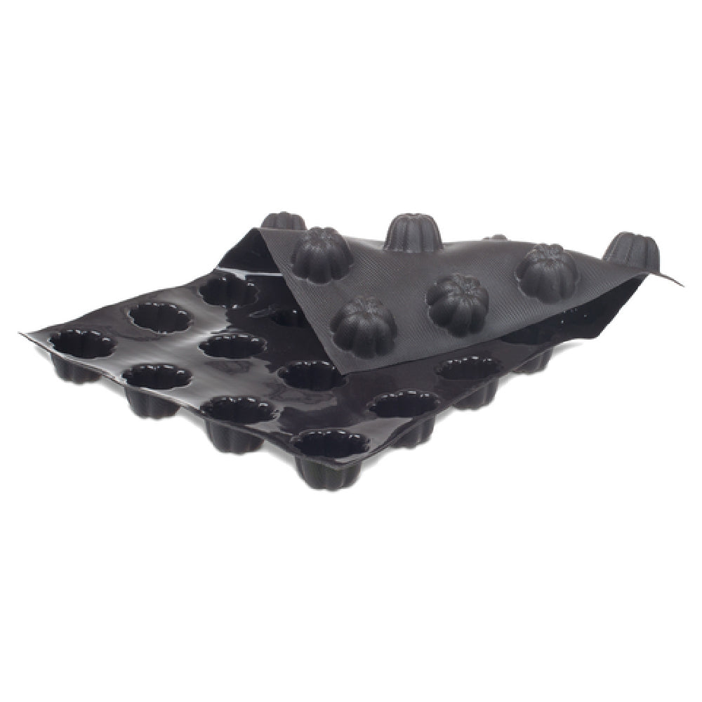 The JB Prince M376 E Demarle Flexipan® Mold is a professional-grade flexible silicone baking mold designed for commercial baking and pastry applications. Measuring 23 inches in length by 15 inches in width, this mold features 24 individual Charlotte cavity forms, each with a diameter of 2-7/16 inches and a height of 1-5/16 inches, accommodating 2 oz. per cavity. Engineered for high-temperature resilience from -40°F to 536°F, it offers excellent non-stick and flexible attributes, facilitating easy release and cleaning. Its black silicone construction ensures durability and precise mold shaping for high-volume bakery production. Ideal for culinary professionals and bakery operations seeking consistent, reliable casting of Charlotte-style desserts and confections with technical precision.