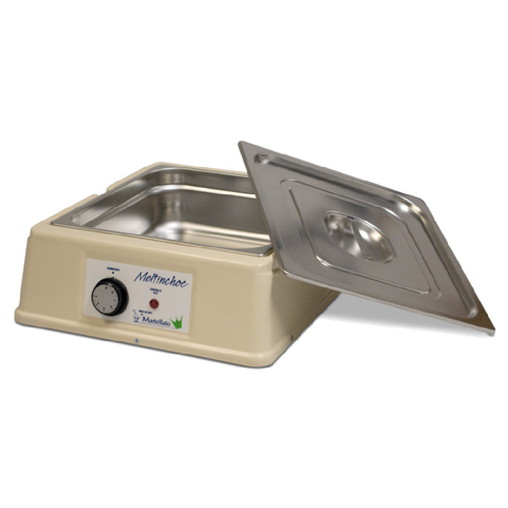 The JB Prince P112 9 Martellato Chocolate Temperer Counter Top 9.5 Qt. is a professional-grade chocolate tempering device designed for precise temperature control in commercial kitchens. This countertop temperer features a 9.5-quart capacity, measuring 17" W x 15" D x 5-1/2" H, and operates within a temperature range of 0 to 140°F. Constructed with a removable stainless steel pan and thermo-resistant plastic exterior, it ensures durability and ease of cleaning. Powered by 110V/60Hz with 200 watts, this model serves confectionery and baking applications requiring consistent chocolate tempering for optimal finish and texture in high-volume foodservice environments.