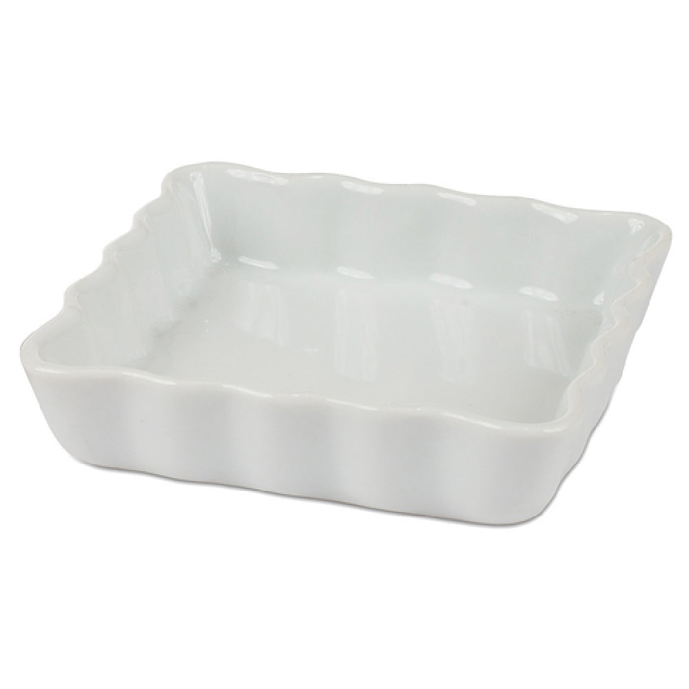 JB Prince R249 4 6-1/2 Oz Crème Brulee Dish Square Fluted Porcelain White - 1/Pack