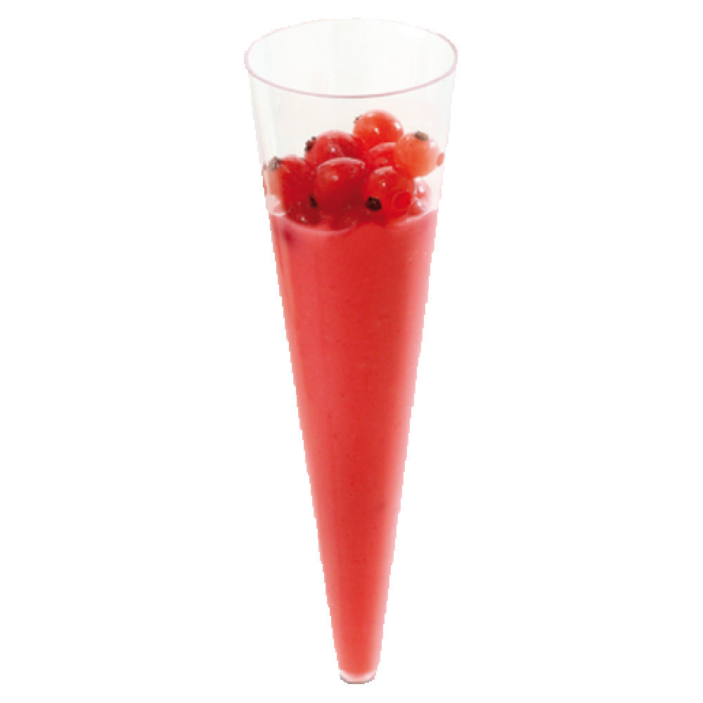A commercial disposable dessert cup is a single-use container designed for serving small portions of desserts, samples, or tasting items in foodservice establishments. Made primarily from food-safe plastics, these cups provide a convenient, sanitation-efficient alternative to reusable serveware. The JB Prince R642 Comatec Disposable Mini Flute measures 1-1/4 inches in diameter with a height of 4-1/2 inches, accommodating 1-1/2 ounces of dessert. It is typically used in upscale restaurants, catering, and tasting events to enhance presentation and streamline service workflows in high-volume environments.