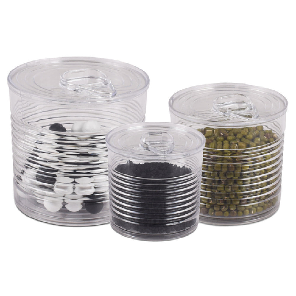 The JB Prince RB124 3 disposable tin can offers a lightweight, recyclable plastic construction with a 3.7 oz. capacity, designed for safe and sanitary handling. Its clear, disposable design simplifies portioning and presentation in high-turnover settings. The inclusion of a lid facilitates secure storage and handling, streamlining workflow in busy foodservice operations. With dimensions of 2-2/5" diameter and a height of 2-3/10", it is optimized for streamlined stacking and storage in commercial environments, ensuring quick access and efficient space management.