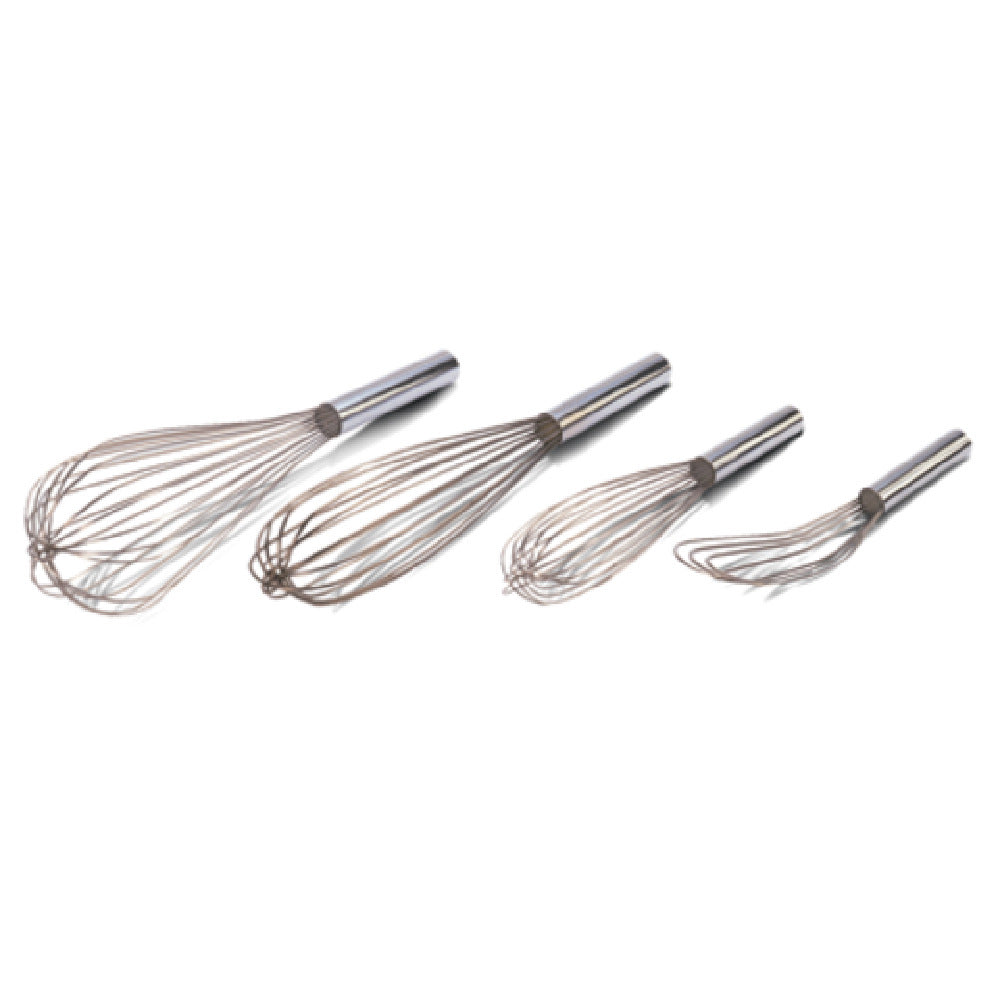 A commercial French whisk is a stainless steel hand tool designed for precise whisking, blending, and aeration in professional culinary environments. Built with shape-retaining wire loops and a sealed handle, it ensures consistent mixing performance and durability in high-volume kitchens. Installed in food prep stations, pastry sections, or line cooking areas, the French whisk like the JB Prince U561 12 supports tasks such as batter preparation and sauce emulsification. Its robust construction and ergonomic design make it suitable for intensive daily use in restaurants, bakeries, and catering operations, where precision and reliability are critical.