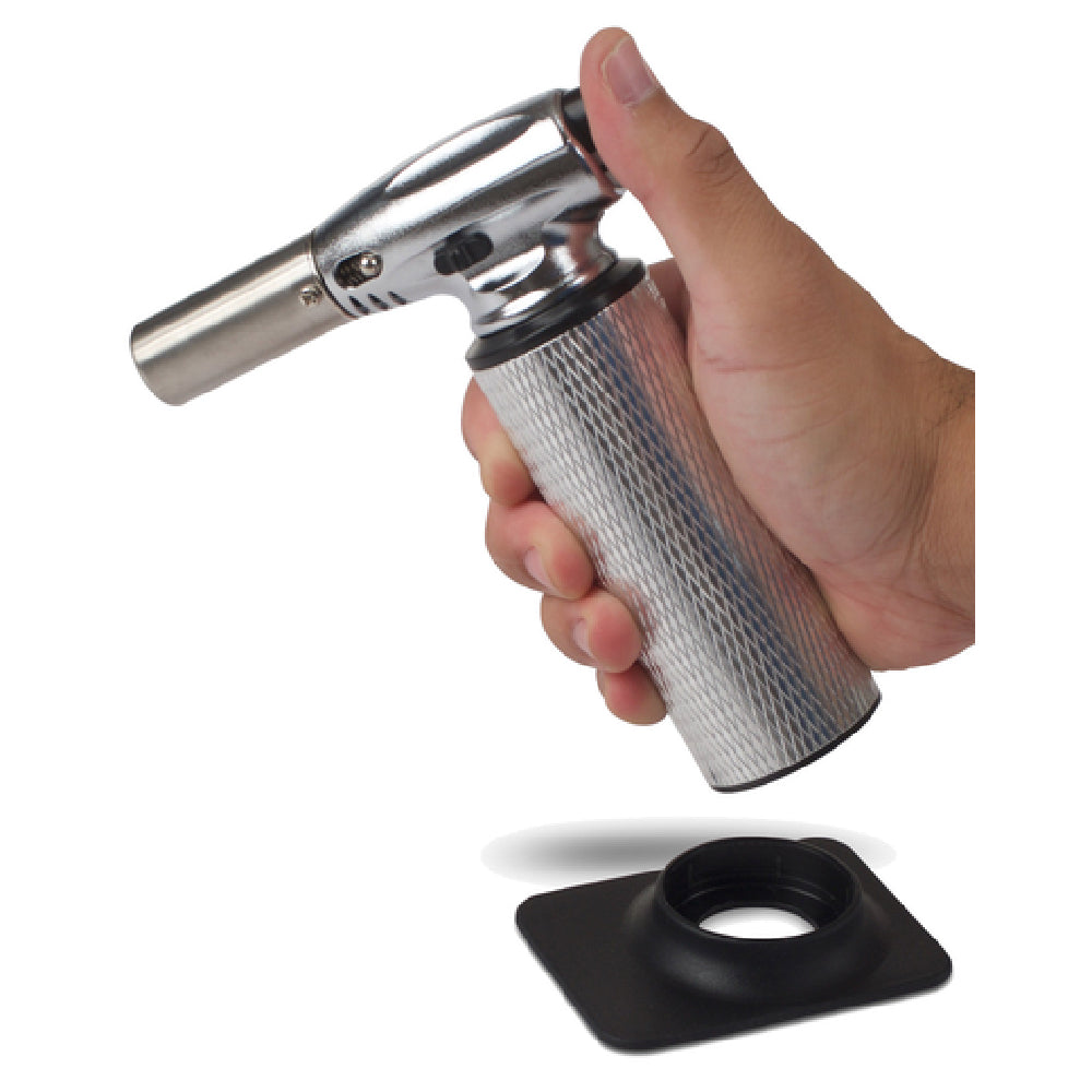 The JB Prince U749 butane torch features a stainless steel body with a height of 7 inches and a weight of 0.9 pounds, designed for durability and ergonomic handling. The device operates with a self-contained fuel system, requiring a 1 oz. fuel cylinder (not included), suitable for repeated use in demanding kitchen environments. Its jet flame reaches temperatures of up to 2700 °F, making it capable of precise culinary finishing tasks. The torch’s construction ensures resistance to heat and wear, while its easy-to-use ignition system facilitates quick startups. It connects seamlessly into food safety workflows, and its compact size makes it suitable for a variety of professional kitchen stations.