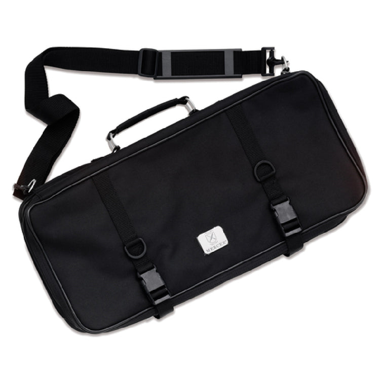 The JB Prince Z176 Mercer Knife Bag with a (3) compartment design and (25) inserts is a professional-grade knife storage solution engineered for commercial foodservice environments. Crafted from durable nylon with a sleek black exterior and a red liner for easy visibility, this knife bag is optimized for transporting and organizing multiple knives securely. Its minimal weight of 4 lbs and soft case construction facilitate portability, making it ideal for chefs, caterers, and culinary professionals requiring reliable knife management. The bag’s precise compartmentalization ensures safe separation of blades, preventing damage and maintaining sharpness during transit or storage, and its technical specifications support efficient workflow integration for kitchen operations requiring quick access and safeguarding of cutlery tools.