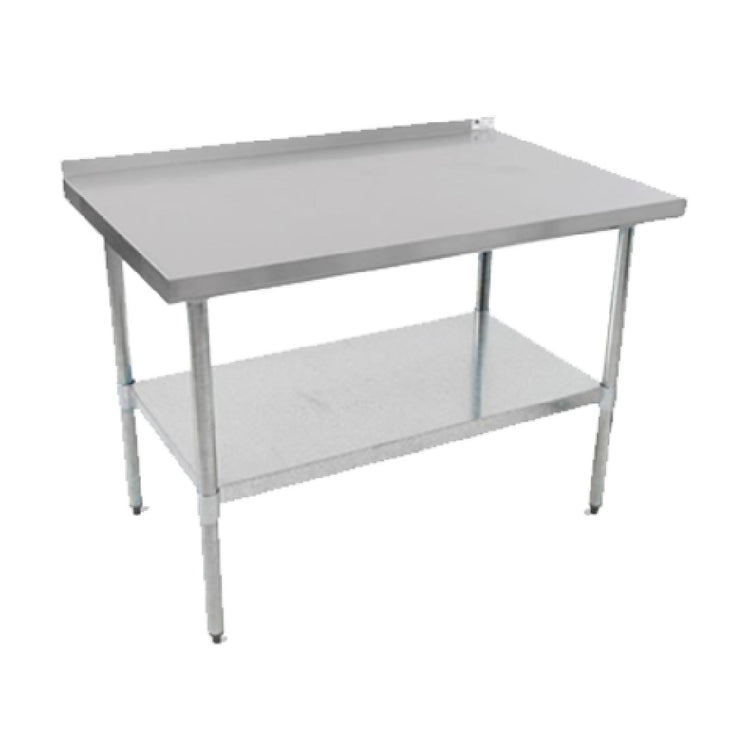 John Boos UFBLS9630 96 Inch Budget Work Table 18 Gauge Stainless Steel Top with Backsplash and Stallion Safety Edge