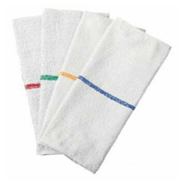 The John Ritzenthaler Company 700BRT-RDS Chef Revival® Bar Towel is a commercial-grade textile designed for professional foodservice environments. Measuring 16" x 19", this high-performance towel is crafted from 100% high-grade cotton, ensuring durability and superior absorbency. Its white base with a red stripe provides a classic, clean appearance suitable for bar and prep stations, contributing to sanitation standards. Its functionality extends to quick-wicking and heavy-duty usage, making it ideal for busy hospitality outlets, bartending stations, and catering operations. The towel’s technical construction optimizes workflow efficiency by facilitating fast drying and effective cleaning in fast-paced kitchen settings. This product exemplifies industry-standard craftsmanship tailored for restaurant and bar service applications that demand reliable, long-lasting textiles.