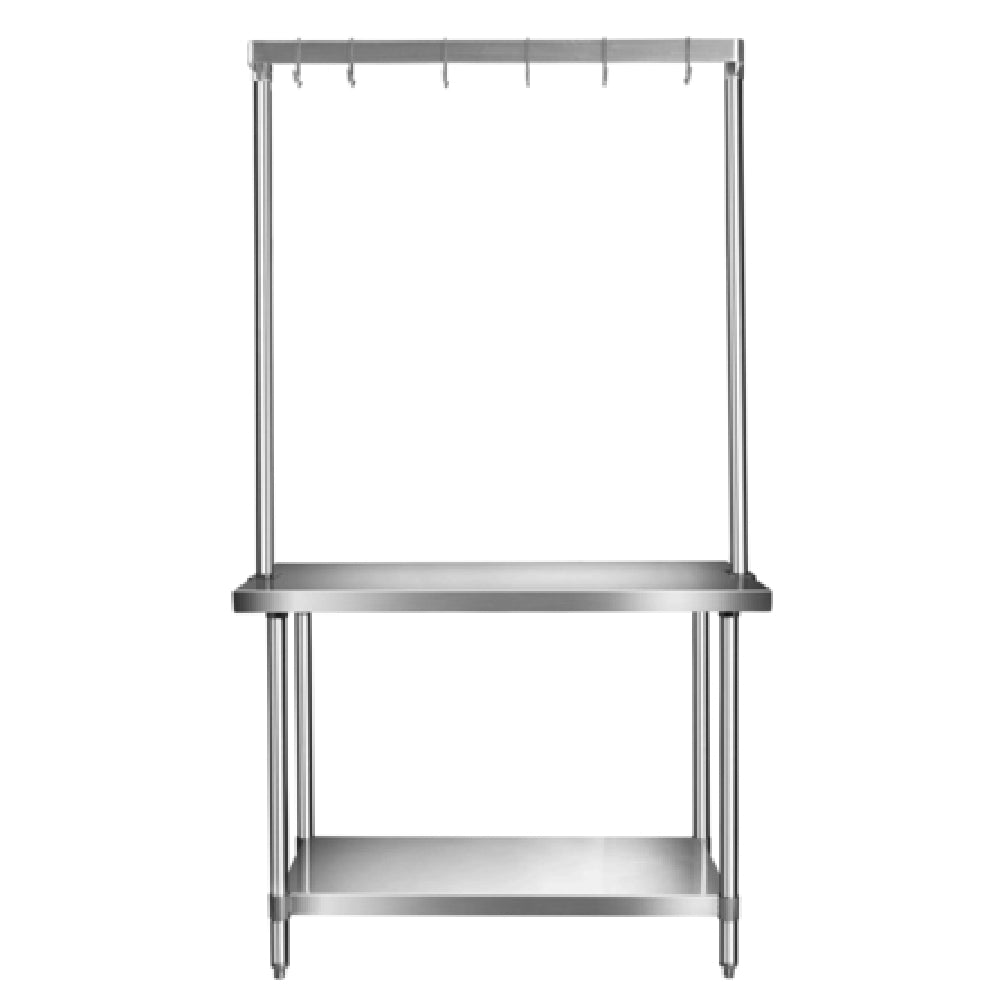 Klinger's Trading, TMU-60, Pot Rack, 60", table mount, adjustable, u-shaped, extends 8" from uprights, 304 stainless steel bar, stainless steel gusset/tubing & double-prong pot hooks, NSF
