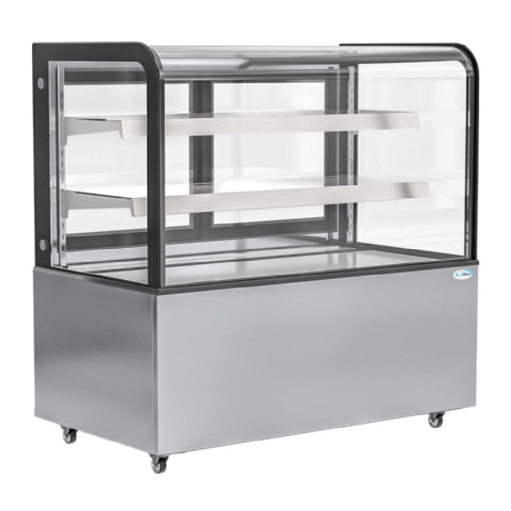 Koolmore, BDC-13C, Dry Bakery Display Case, non-refrigerated, 47"W, 14 cu ft. capacity, (2) adjustable glass shelves, front curved glass, LED Lighting, (4) rolling lockable caster wheels, 1-year manufacturer parts and labor warranty