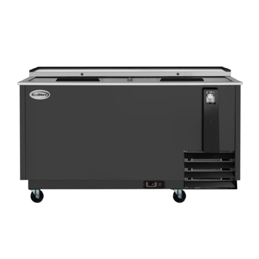 The Koolmore KM-BOC65-BK features a self-contained refrigeration system with a bottom-mounted compressor for efficient operation and simplified servicing. It operates on a standard 115V electrical supply, consuming an appropriate amount of power for its size while maintaining optimal temperature stability. The air-cooled condenser enhances heat dissipation, supporting consistent temperatures within the 33°F to 40°F range. Constructed with durable materials, the unit’s exterior finish is all black, designed to withstand commercial kitchen and bar environments. Its overall dimensions measure 51 to 65 inches in width, 34.2 inches in height, and 28 inches in depth, with a total weight of approximately 297 pounds. Its internal capacity and refrigeration design make it suitable for mid-volume beverage storage in hospitality venues. Additionally, the unit features an integrated bottle opener for added convenience, and its construction adheres to safety and cleanliness standards suitable for busy foodservice settings.