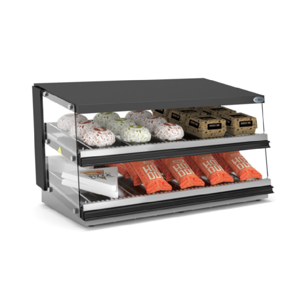The Koolmore KM-OAHD-48 Open Air Display Warmer Countertop 48"W is a commercial-grade countertop food presentation unit designed for self-service environments. This open air display case features a stainless steel and glass construction, providing durability and clear visibility for hot food items. Equipped with two adjustable shelves and glass side panels, it facilitates efficient product access and optimal presentation. Its technical attributes include a 48-inch width, 27.2-inch height, and 27.8-inch depth, with a weight of 167 pounds. Engineered for consistent performance, it caters to foodservice operators requiring reliable hot display storage with straightforward maintenance and high visibility for customer-facing service scenarios.