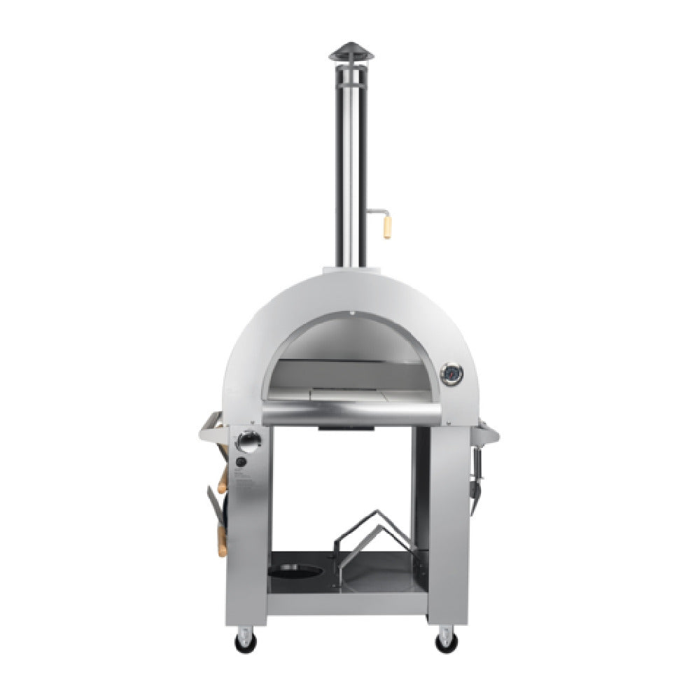 A commercial pizza oven is a specialized cooking device designed for high-volume pizza production, capable of handling large throughput with precise temperature controls. The Koolmore KM-OKS-DFPO, an outdoor dual fuel pizza oven, features a 32-inch wide chamber with stainless steel construction and a built-in chimney with flue tamper control, making it ideal for restaurant-grade outdoor cooking. It supports versatile fuel options, including wood and gas, and is engineered for reliable performance under continuous operation, suitable for outdoor restaurant patios, catering services, or dedicated pizza stations in commercial kitchens. Its durable design ensures consistent baking results for medium-volume operations, meeting the demands of professional foodservice settings that prioritize efficiency and authenticity.