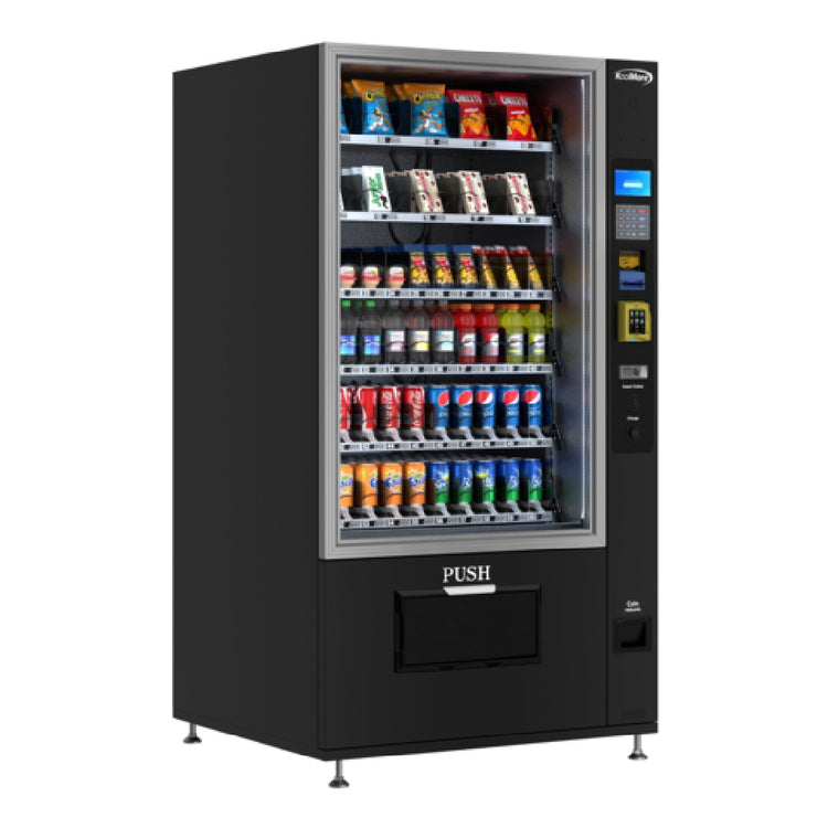 The Koolmore KM-VMR-40-BCR Refrigerated Snack Vending Machine is a commercial-grade vending kiosk designed for efficient snack and beverage distribution in various foodservice environments. With a precise dimension of 40-4/5 inches in width, 31 inches in depth, and 76-7/10 inches in height, this unit features (60) snack slots, integrated credit card reader, coin accepter, and bill acceptor, ensuring seamless cashless and coin transactions. Equipped with six metal plate shelves and digital temperature control, it provides reliable refrigerated storage, making it ideal for mid-volume vending operations in convenience stores, office buildings, and hospitality venues. Its robust construction and advanced features support optimized workflow and product presentation for high-traffic commercial settings.
