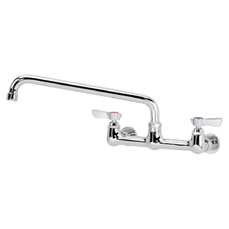 The commercial wall and splash mount faucet is a fixture designed for dedicated installation on backsplash surfaces, providing easy access and efficient water delivery in foodservice settings. The Krowne 12-812L model, featuring splash mounting capability and an 8-inch centers configuration, is installed in professional kitchens, prep stations, or dishwashing areas. It includes a standard swing spout and ceramic valve for precise control, making it suitable for high-traffic foodservice environments such as restaurants and cafeterias, where durability and reliability are essential.