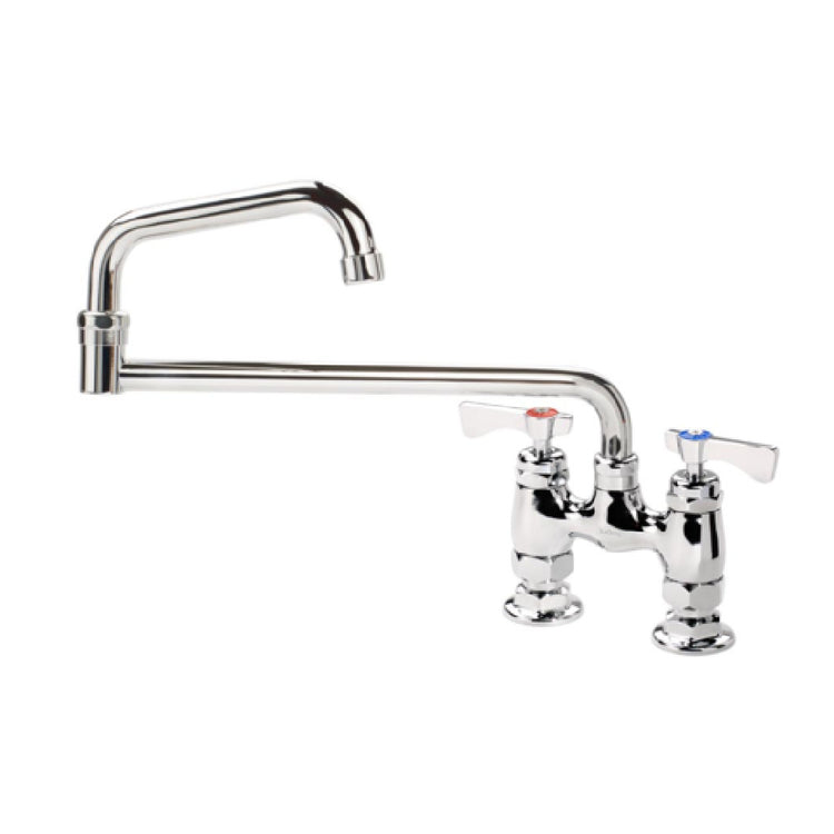 The Krowne 15-418L Krowne Royal Series Faucet is a commercial-grade deck mount fixture designed for precise water distribution in professional foodservice environments. Engineered with a 4" centers configuration, it features an 18" jointed spout optimized for ergonomic operation and versatile reach. This faucet incorporates a 1/4 turn ceramic cartridge valve for reliable, leak-free control and is low lead compliant, ensuring safety and compliance in high-demand culinary settings. Constructed from durable materials suitable for rigorous use, it is ideal for installation in restaurant kitchens, catering facilities, and institutional food prep areas requiring dependable mixing or rinsingWater delivery with technical accuracy. The model specification highlights internal check valves to prevent backflow, maintaining sanitation standards while supporting continuous operation in commercial applications.