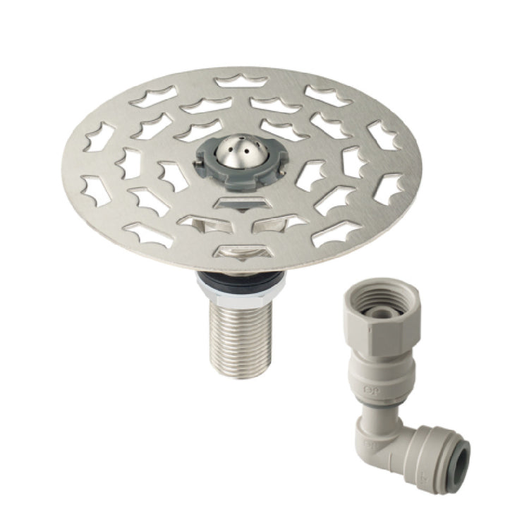 The Krowne 16-144 Royal Series Glass Rinser is a commercial-grade cleaning device designed for beverage service environments. With a 4-1/2" diameter and a height of 4-1/4", this stainless steel unit features a perforated grid for efficient rinsing of glasses, cups, and smallware. Its 1/2" NPS connection, compatible with a 3/8" adapter, enables straightforward integration into existing plumbing. Engineered for durability and ease of maintenance, this glass rinser is equipped with NSF and ETLus certifications, ensuring sanitation standards are met in high-volume foodservice settings. Expertly constructed for consistent performance, the device enhances workflow efficiency through rapid glass cleaning cycles, making it ideal for busy cafes, bars, and restaurant beverage stations.