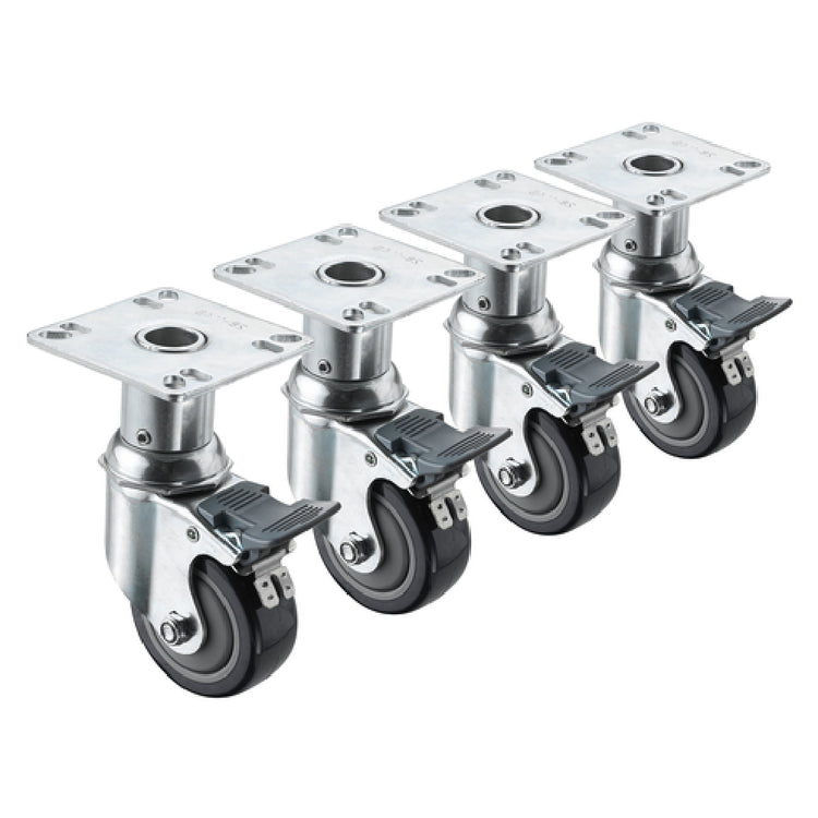 Ideal for mobile workstations, carts, or equipment that require precise height adjustments in professional kitchens or foodservice operations.
