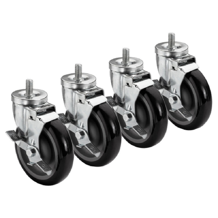 Designed for medium-volume foodservice operations, Krowne 28-146S casters feature durable construction and reliable locking mechanisms. Manufactured by Krowne, these swivel stem casters with brakes are ideal for mobility and stability in commercial kitchens, equipped to handle moderate workloads with ease. They support ergonomic workflow and quick repositioning in foodservice applications with a compact, heavy-duty build.