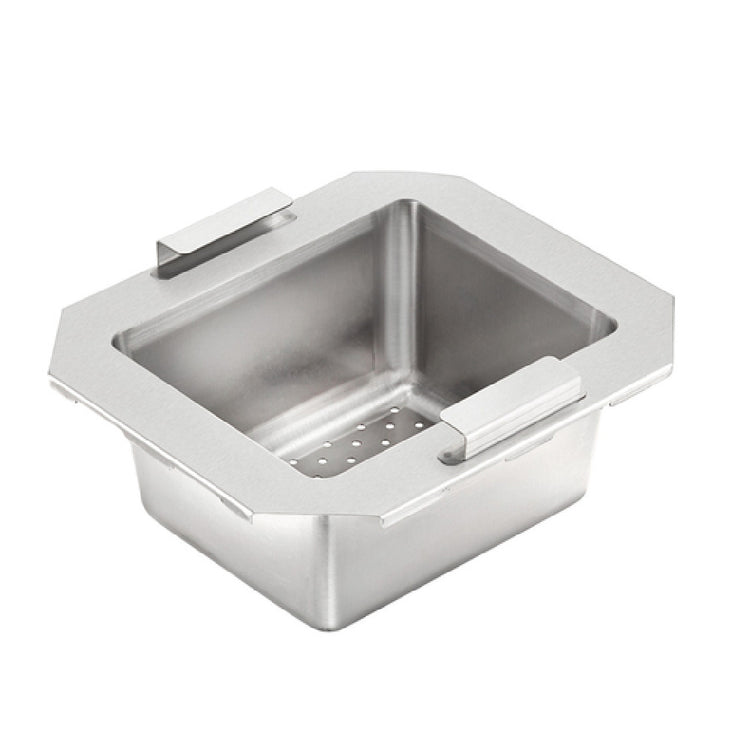 A commercial drain sink basket is a stainless steel strainer designed to fit into standard sink bowls, functioning to trap debris while allowing water to drain freely. The Krowne 30-153 model, in particular, is a perforated basket with stainless steel handles, suited for 10" x 12" x 7" sinks in bar, prep, or beverage stations. It is used to prevent clogging and streamline cleaning processes, supporting efficient kitchen operations and maintaining sanitary conditions in medium-volume foodservice environments.