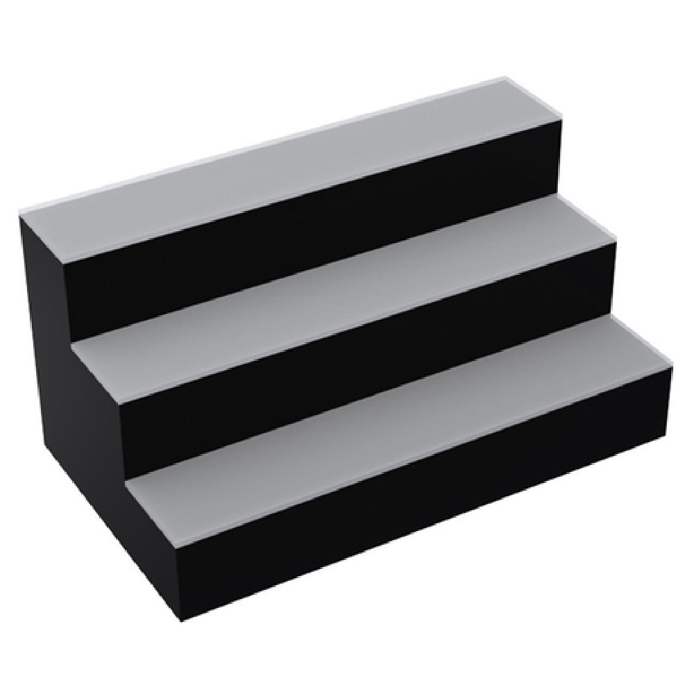 Krowne, KR-3T24-R, Royal Series Lighted Countertop Liquor Display, 3-tier, 24"W, (2) wireless remotes, (18) bottle capacity, multi-color LED lights, 1/4" double frosted clear acrylic tops, 1/4" glossy black acrylic front, sides & back, 7 ft. cord with plug on right side, cULus