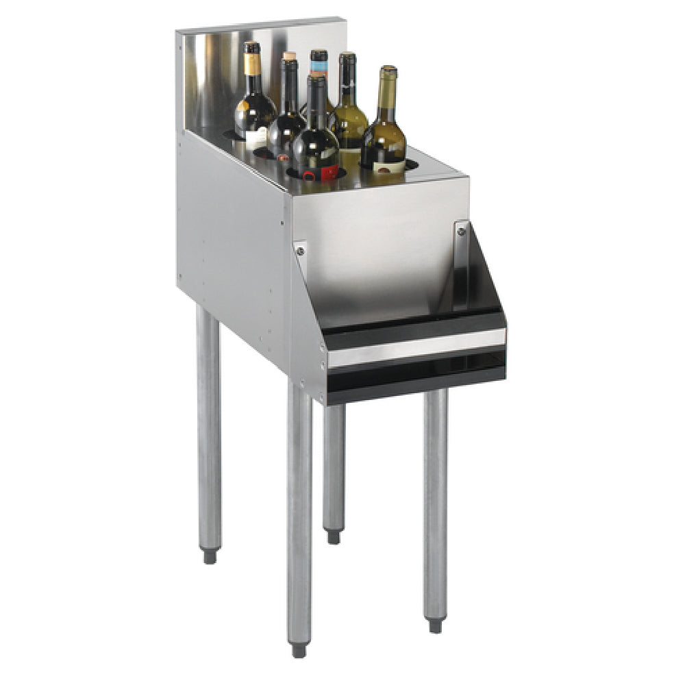 Krowne, KR19-12, Royal Series Underbar Bottle Storage/Ice Bin, insulated, 12"W x 19"D, holds (6) bottles, 32lbs. ice capacity, 10" deep stainless steel bin liner, 1" drain, stainless steel top, front, & sides, galvanized steel back & bottom, stainless steel legs with adjustable thermoplastic bullet feet, NSF