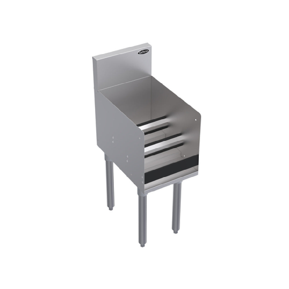 The Krowne KR19-12RD features a self-contained design with all stainless steel construction for longevity and ease of cleaning. It operates in standard conditions with no electrical requirements, relying solely on its structural features for stability and functionality. The unit measures 12 inches wide by 19 inches deep and 36.5 inches high, with a weight of 32 pounds, supporting steady placement with adjustable stainless steel legs equipped with thermoplastic bullet feet. Its stainless steel top surface is resistant to operating temperature ranges typical of beverage service environments, ensuring easy sanitation and maintenance. The units are rated for commercial foodservice use, combining durability with practical design for efficient beverage organization.