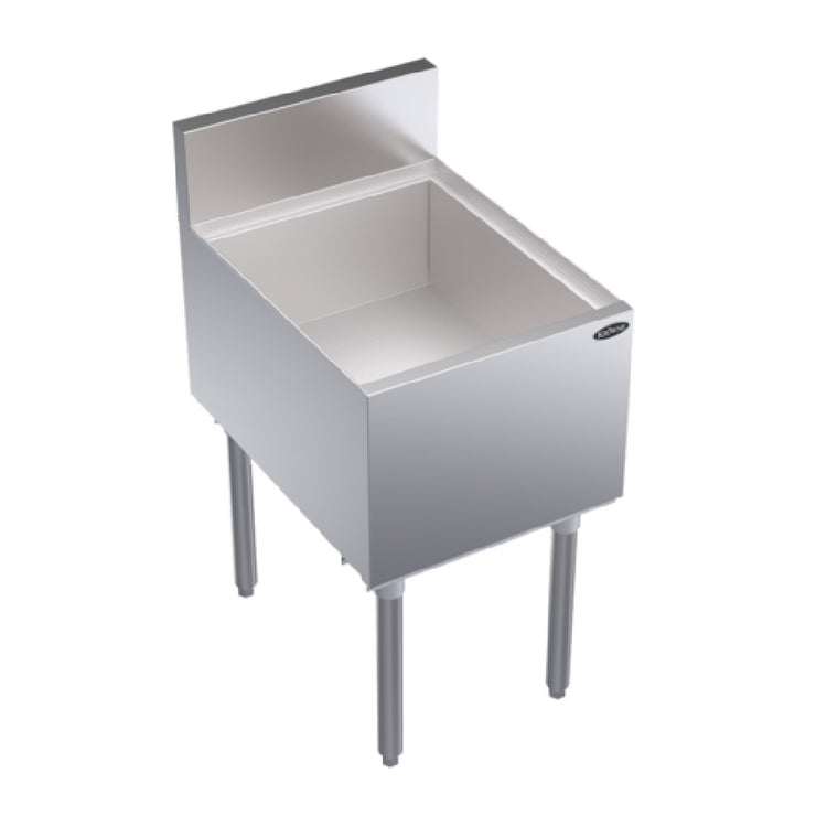 Krowne, KR24-18, Royal Series Underbar Ice Bin/Cocktail Unit, 18"W x 24"D O.A., 69-lb capacity, 12" deep stainless steel bin liner, 1" drain, stainless steel top, front & sides, galvanized steel back & bottom, stainless steel legs with adjustable thermoplastic bullet feet, NSF