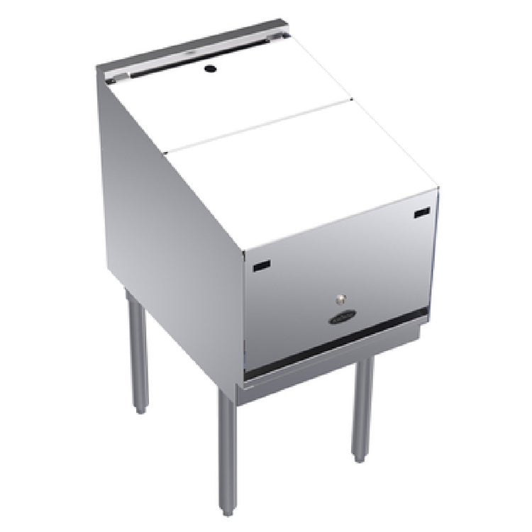 The Krowne KR24-18RD-LC is engineered with a stainless steel top, front, and sides, complemented by galvanized steel back and bottom panels. It measures 18 inches in width, 24 inches in depth, and 36.5 inches in height, weighing approximately 55 lbs for sturdy placement. The unit features four bottle steps with guard rails designed to hold up to 16 bottles securely. This model is NSF certified, ensuring compliance with commercial sanitation standards. It operates without electrical requirements and utilizes a lockable removable cover for security. The construction material is suitable for frequent cleaning, with a focus on durability and resistance to corrosion. Its compact size makes it perfect for installation in busy bar lines and beverage stations, supporting efficient beverage service workflows.