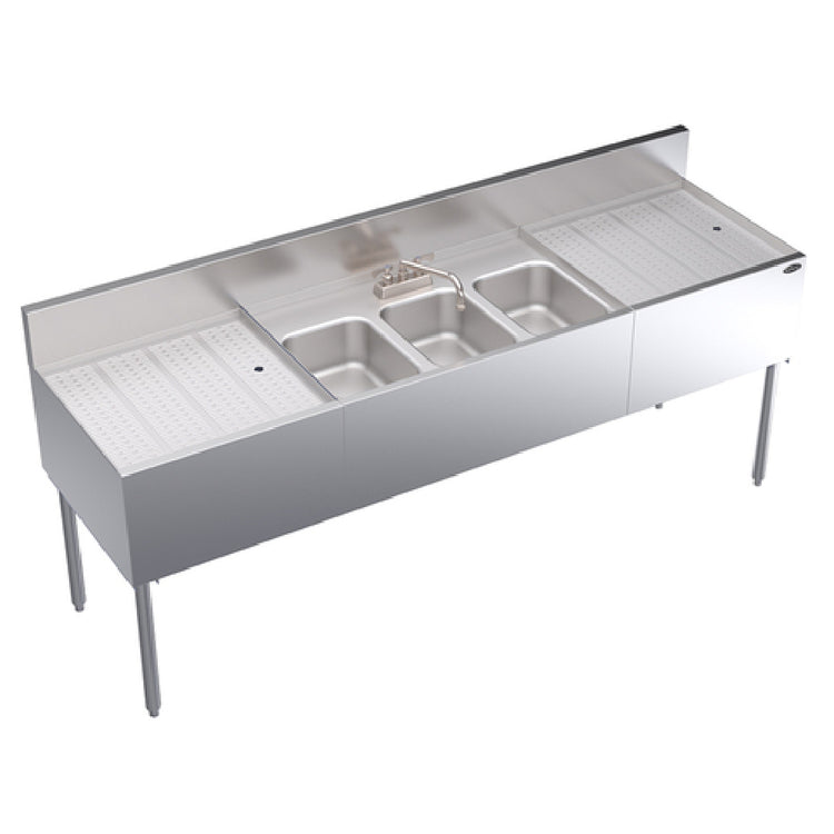 Krowne KR24-73C 84 Inch Three Compartment Underbar Sink Unit with Drainboards