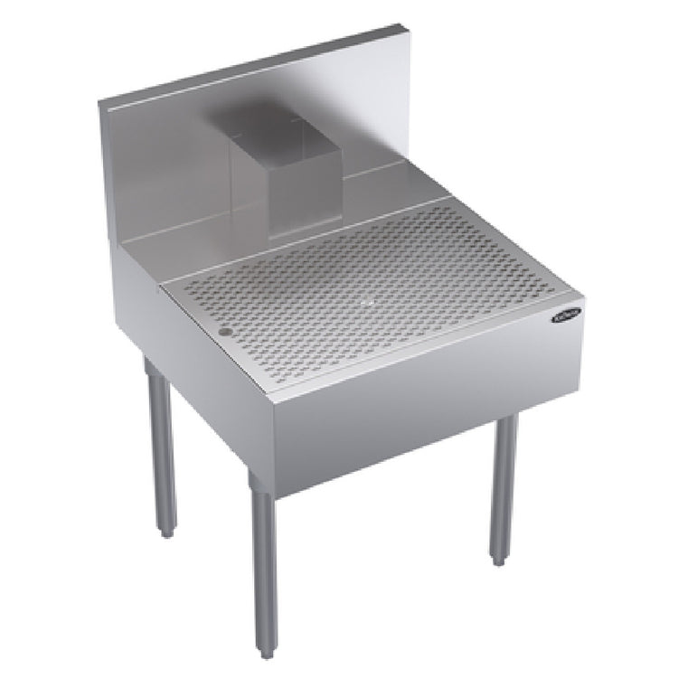 This underbar beer drainer is optimized for busy commercial kitchens, offering precise drainage capacity with stainless steel top and sides for easy cleaning. Its galvanized back and bottom enhance durability under frequent use, while the adjustable thermoplastic bullet feet facilitate leveling on uneven surfaces. The rear tubing chase simplifies installation, and the removable perforated insert allows quick maintenance. With a 24"W x 24"D footprint and 26" working height, it seamlessly integrates into existing bar setups for efficient beverage service.